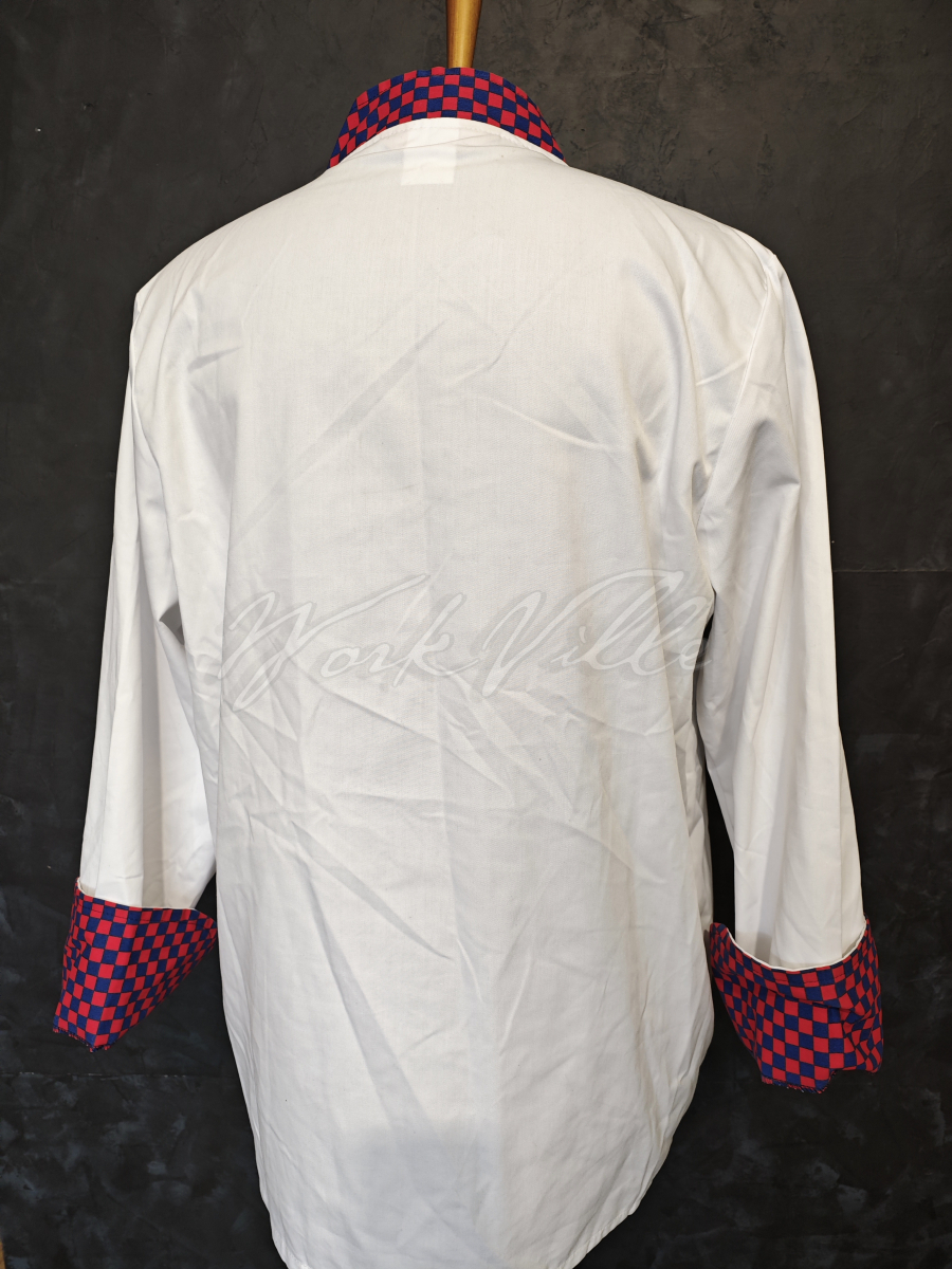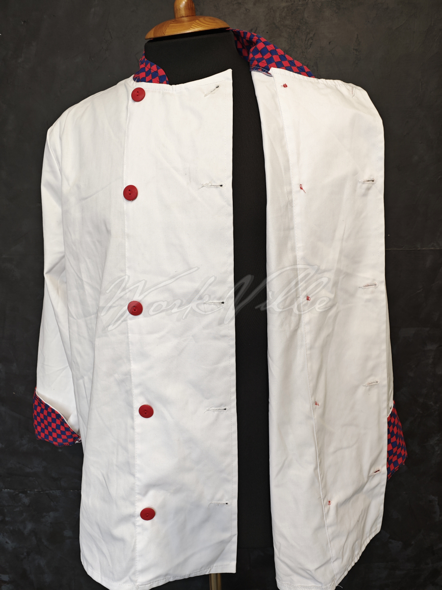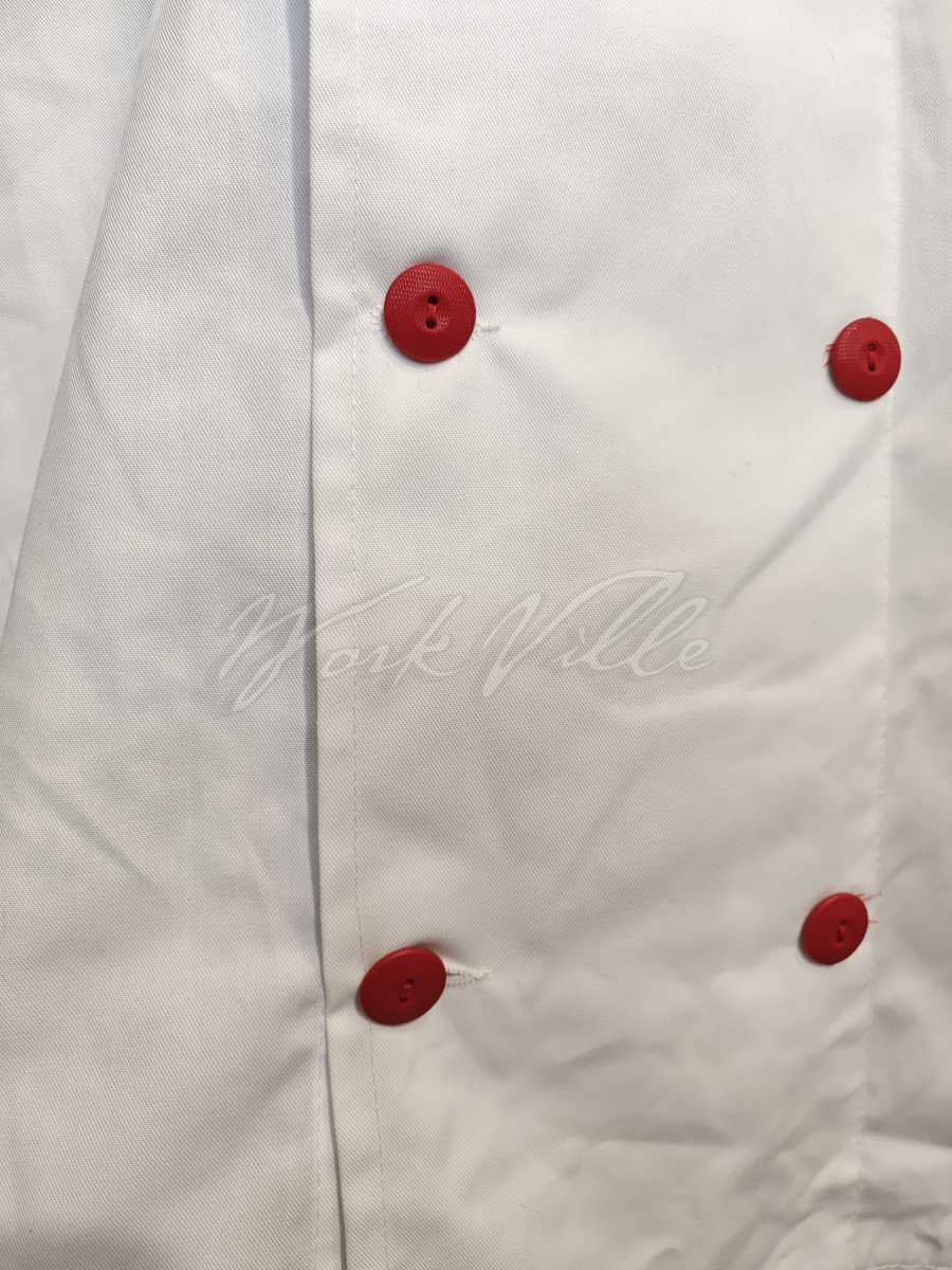 Китель повара Bowstone белый с контрастными пуговицами и воротом.