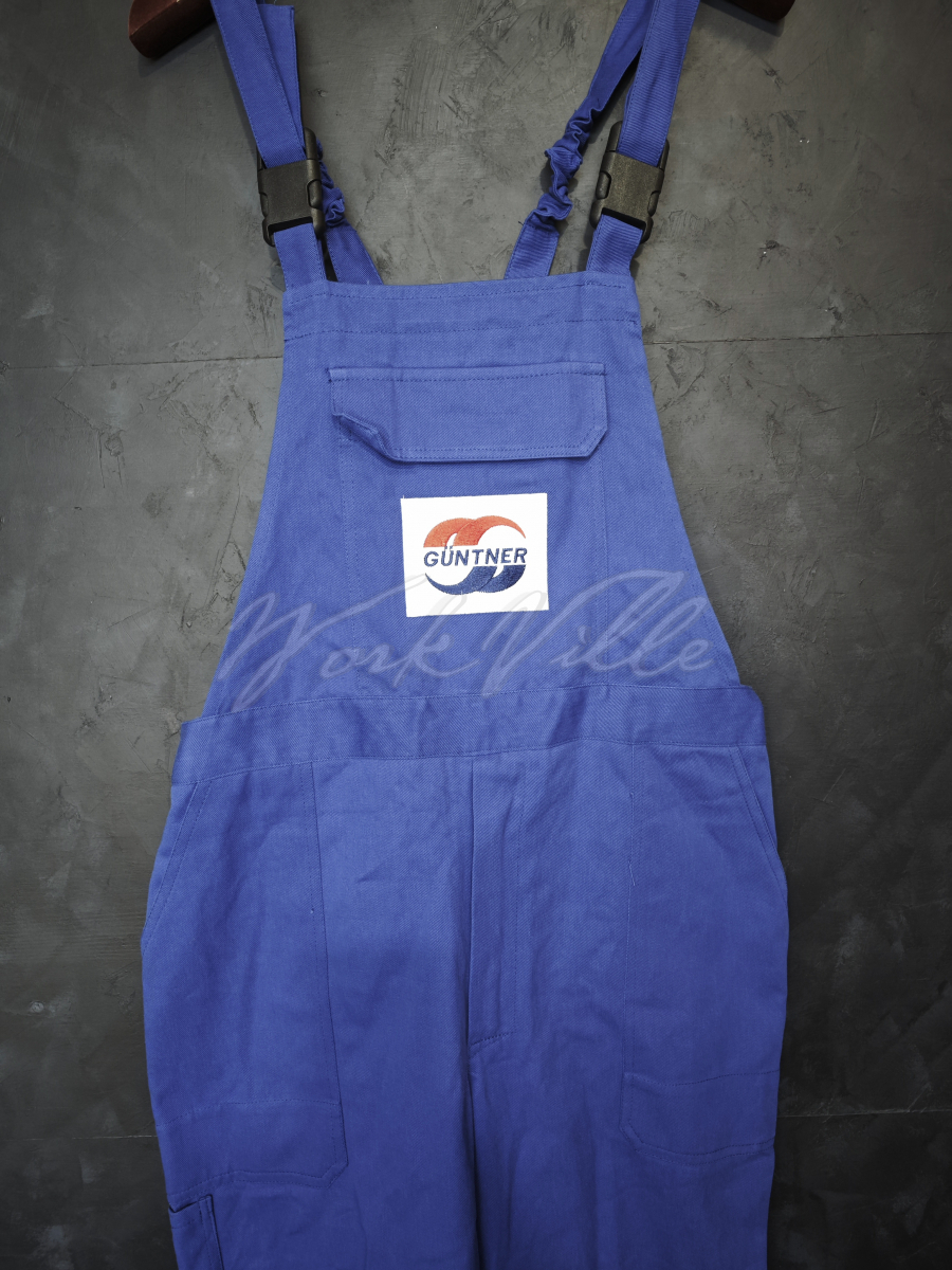 Полукомбинезон на лямках синего цвета с логотипом Guntner.