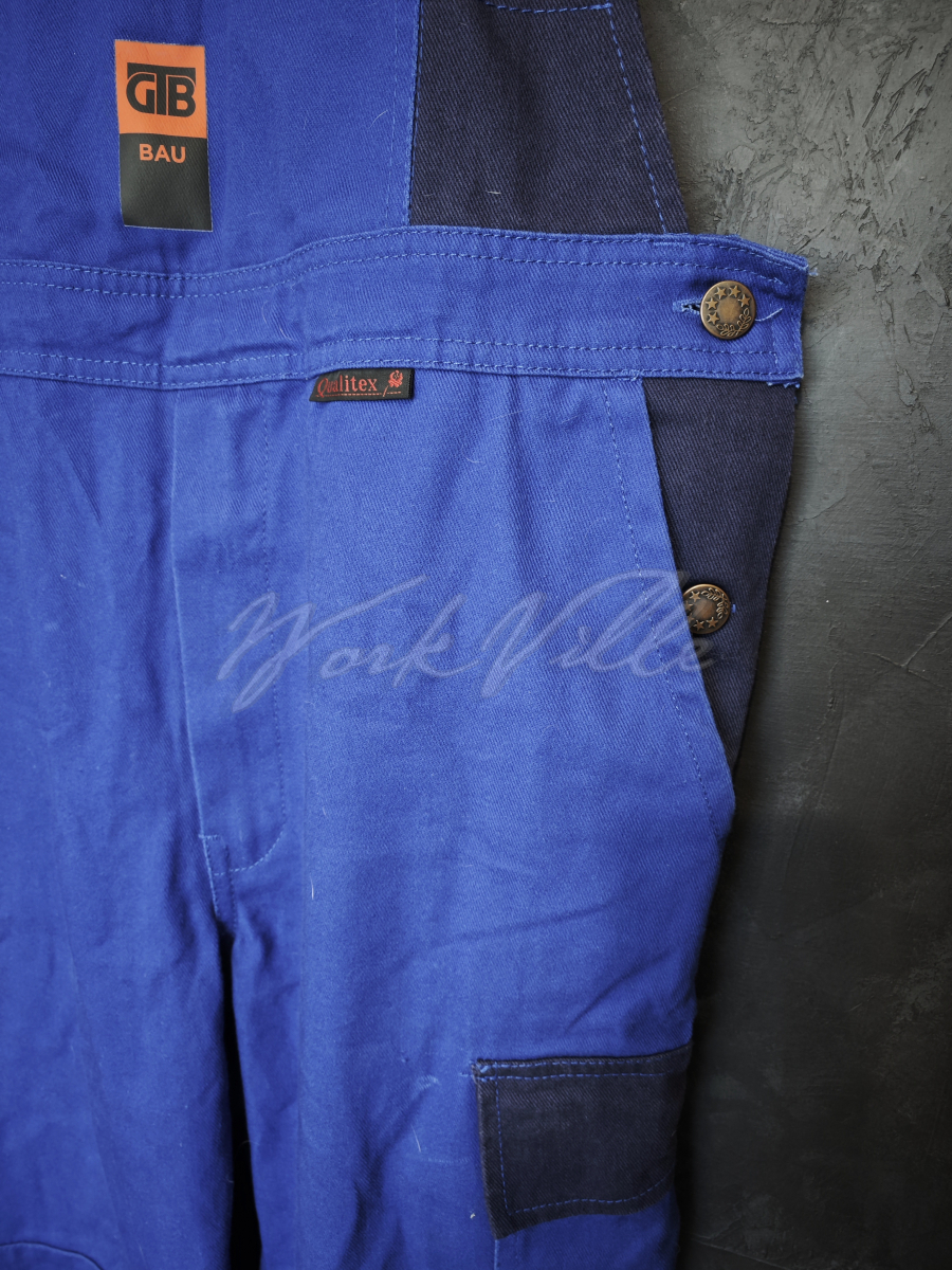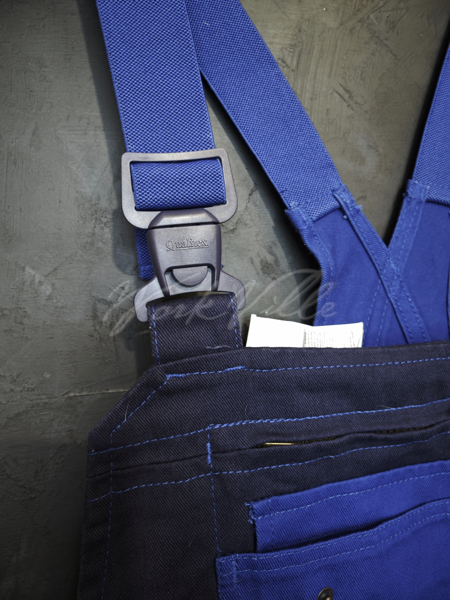 Рабочий полукомбинезон Qualitex MG 300 синего цвета с темными вставками.