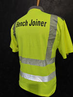 Сигнальная футболка-поло Leo Workwear ярко -желтого сигнального цвета со светоотражающими полосами.