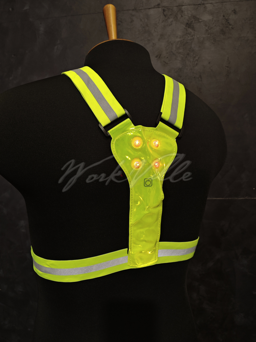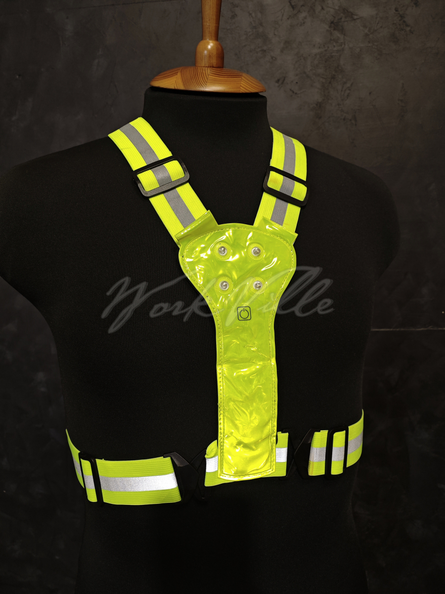 Ремень светоотражающий с наплечными лямками, центральной светоотражающей полоской и светодиодами для велосипедистов, роллеров и самокатчиков незаменимая вещь.