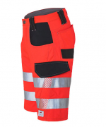 Рабочие шорты KÜBLER REFLECTIQ Shorts PSA 2 в контрастном красном цвете с светоотражающими лентами.