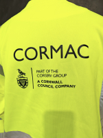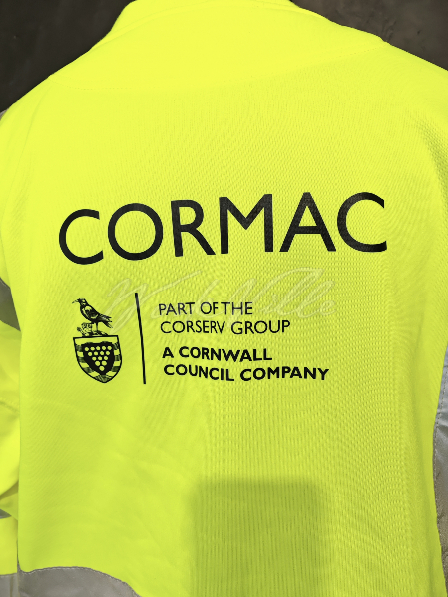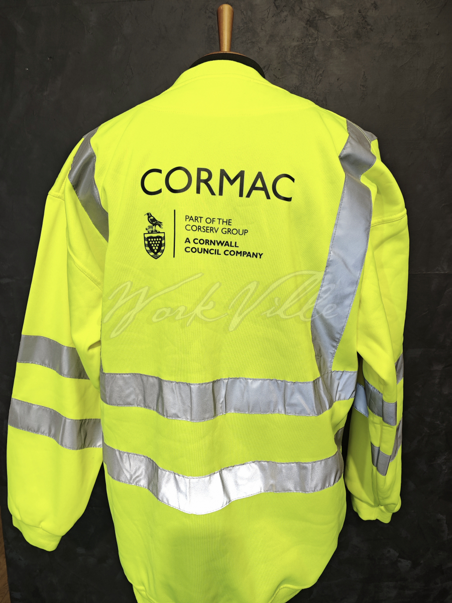 На спине свитшота имеется герб Совета графства Корнуолл, местного органа власти в Юго-Западной Англии.