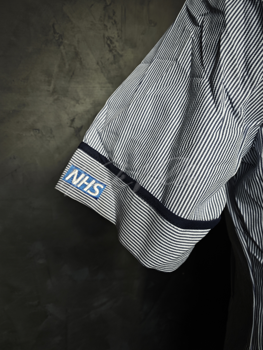 На рукаве вышивка: NHS.