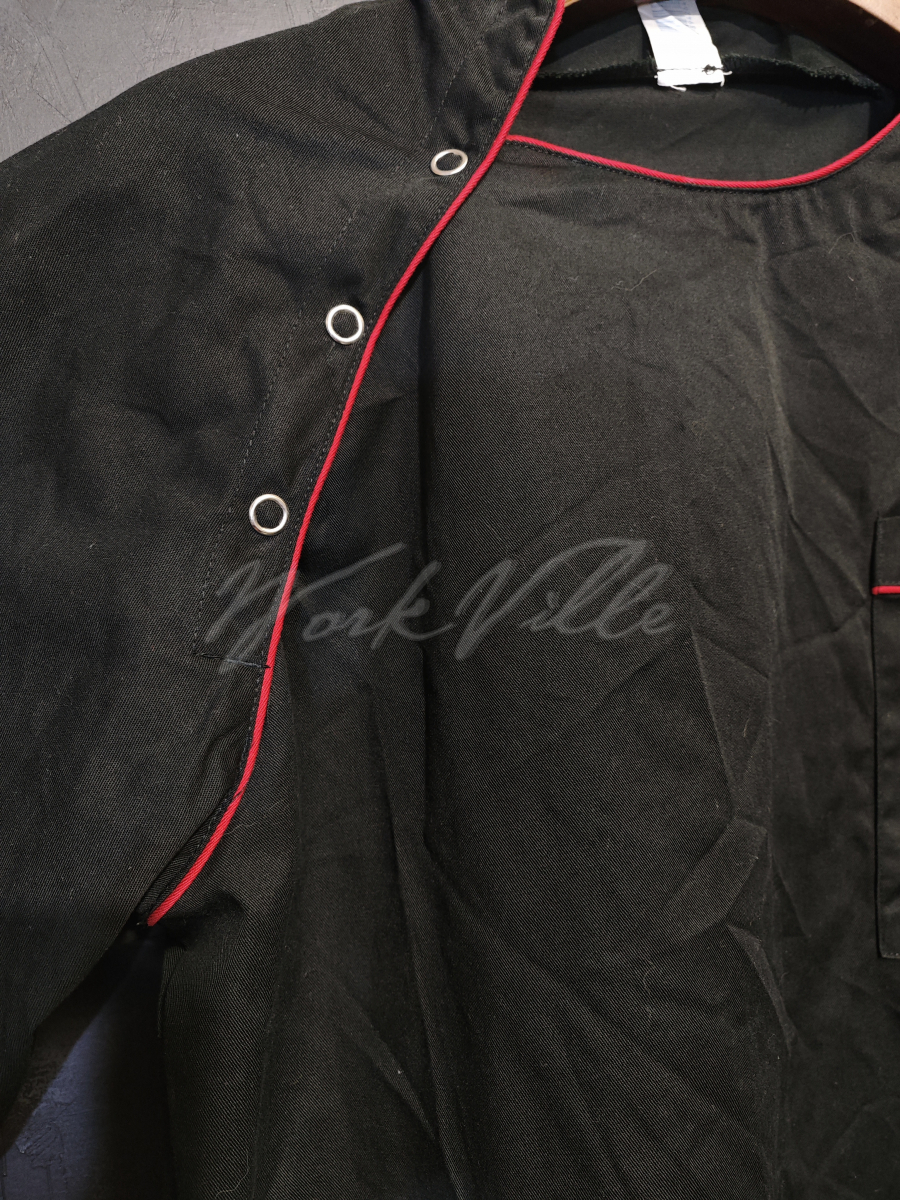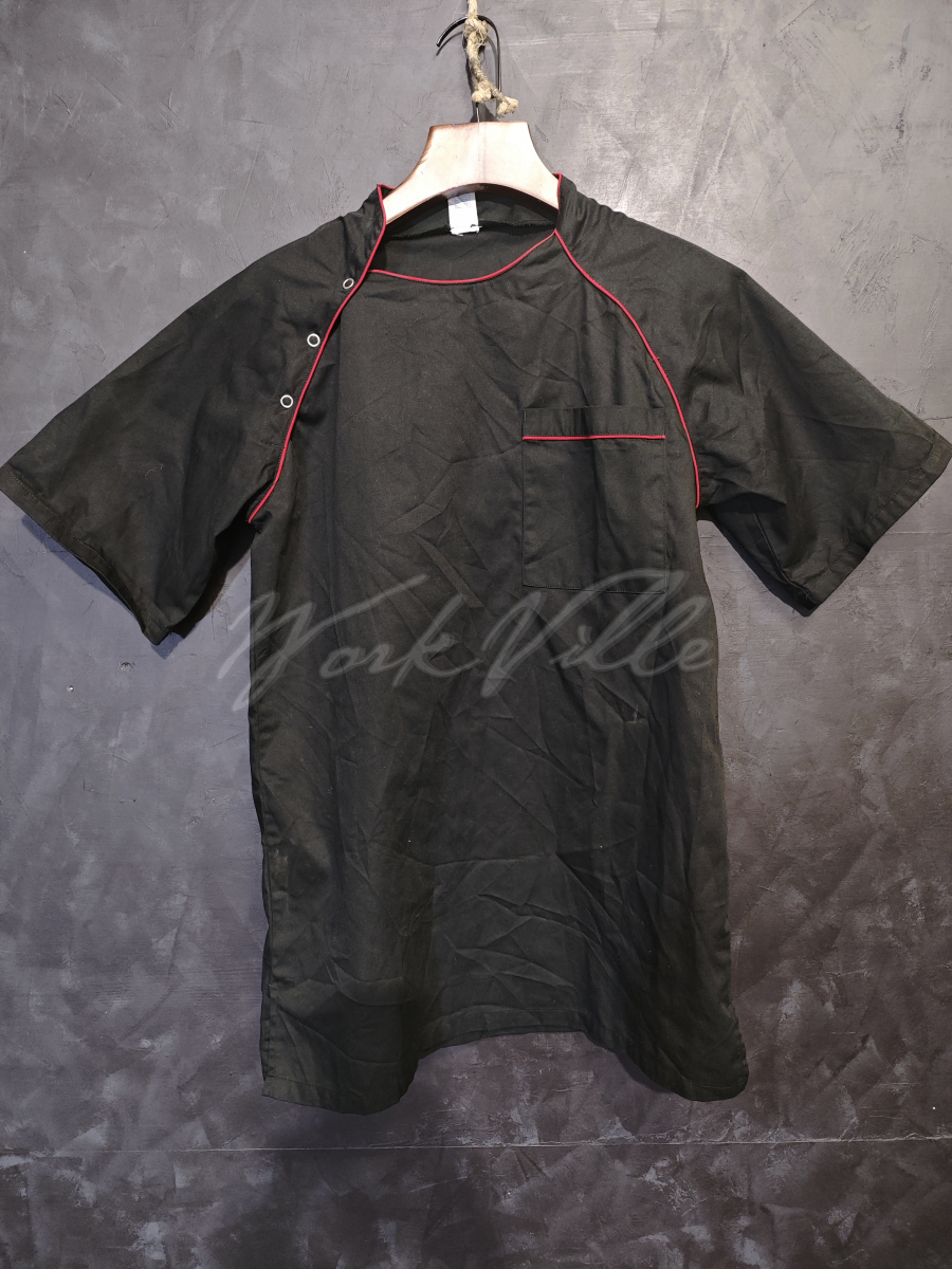 Блуза женская с коротким рукавом для сотрудников медицинских организаций N&NF в черном цвете с красным кантом.