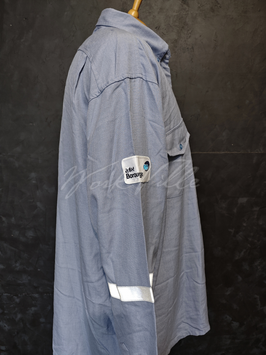 Мужская рубашка из негорючего материала номекс и со светоотражающими полосами.
