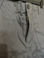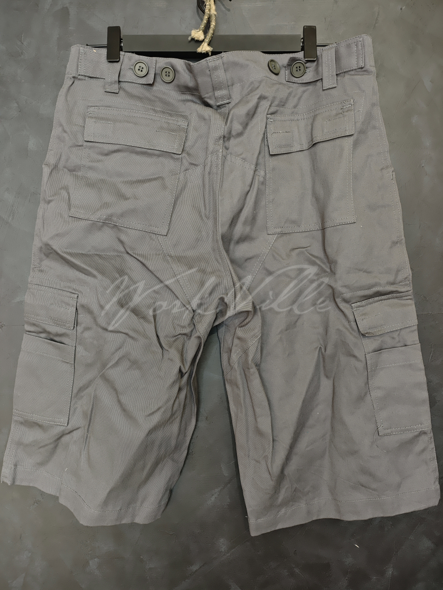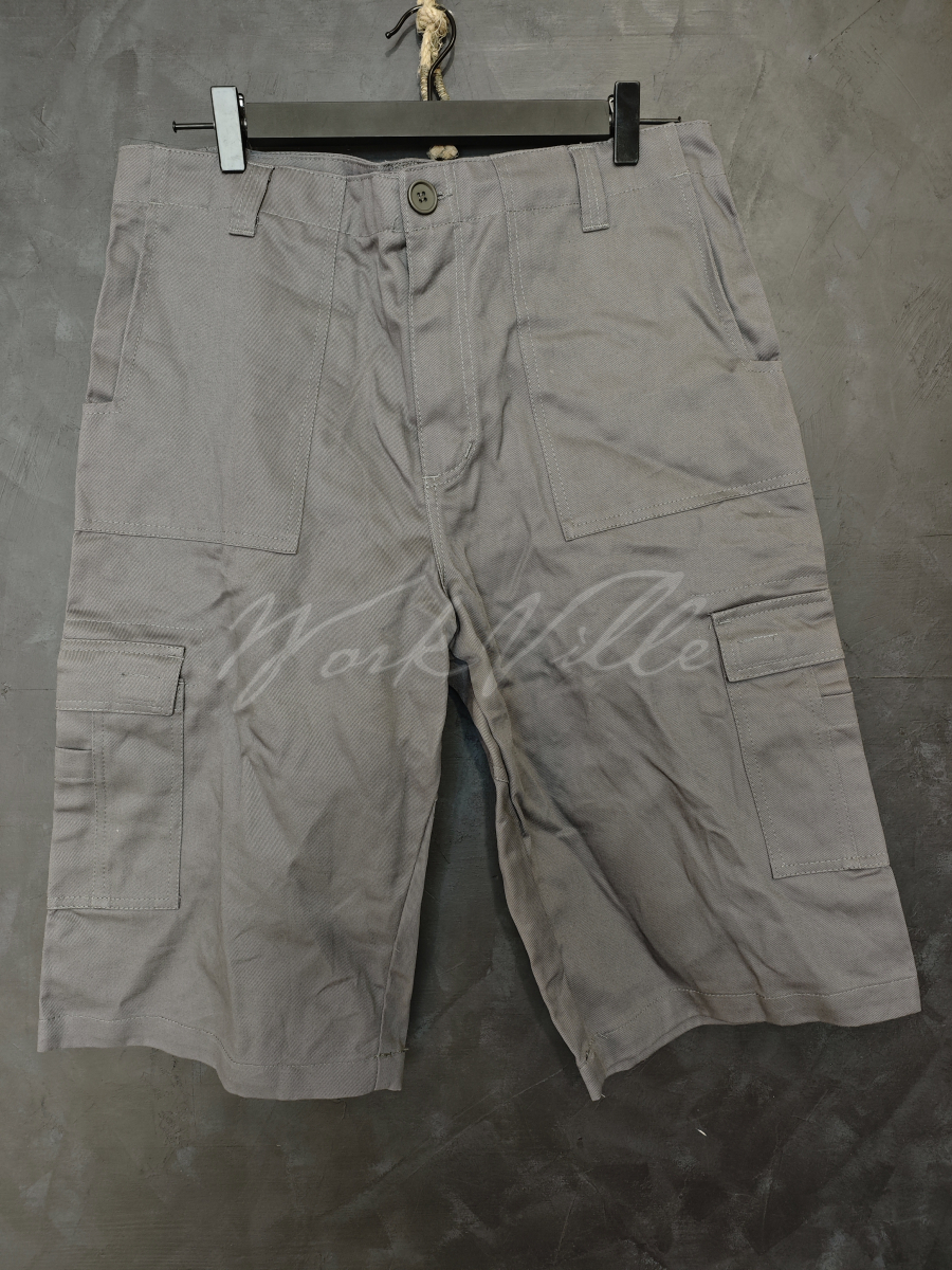 Удлиненные серые хлопковые шорты с накладными карманами.