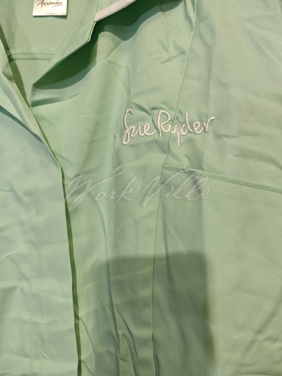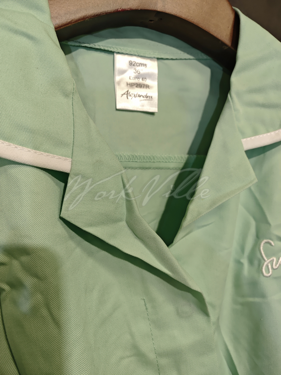 Халат медсестер Alexandra в стиле степ-ин, подходящее для всех медицинских работников, с воротником и манжетами с окантовкой.