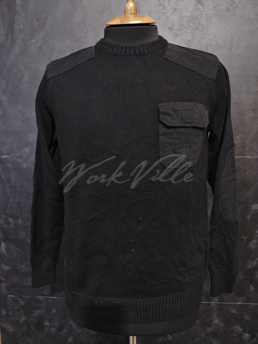 Легкий свитер с накладками и карманом в черном цвете.