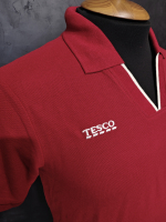 На груди слева и на рукаве логотип компании Tesco -это крупнейшая розничная сеть Великобритании и один из лидеров мирового ритейла.
