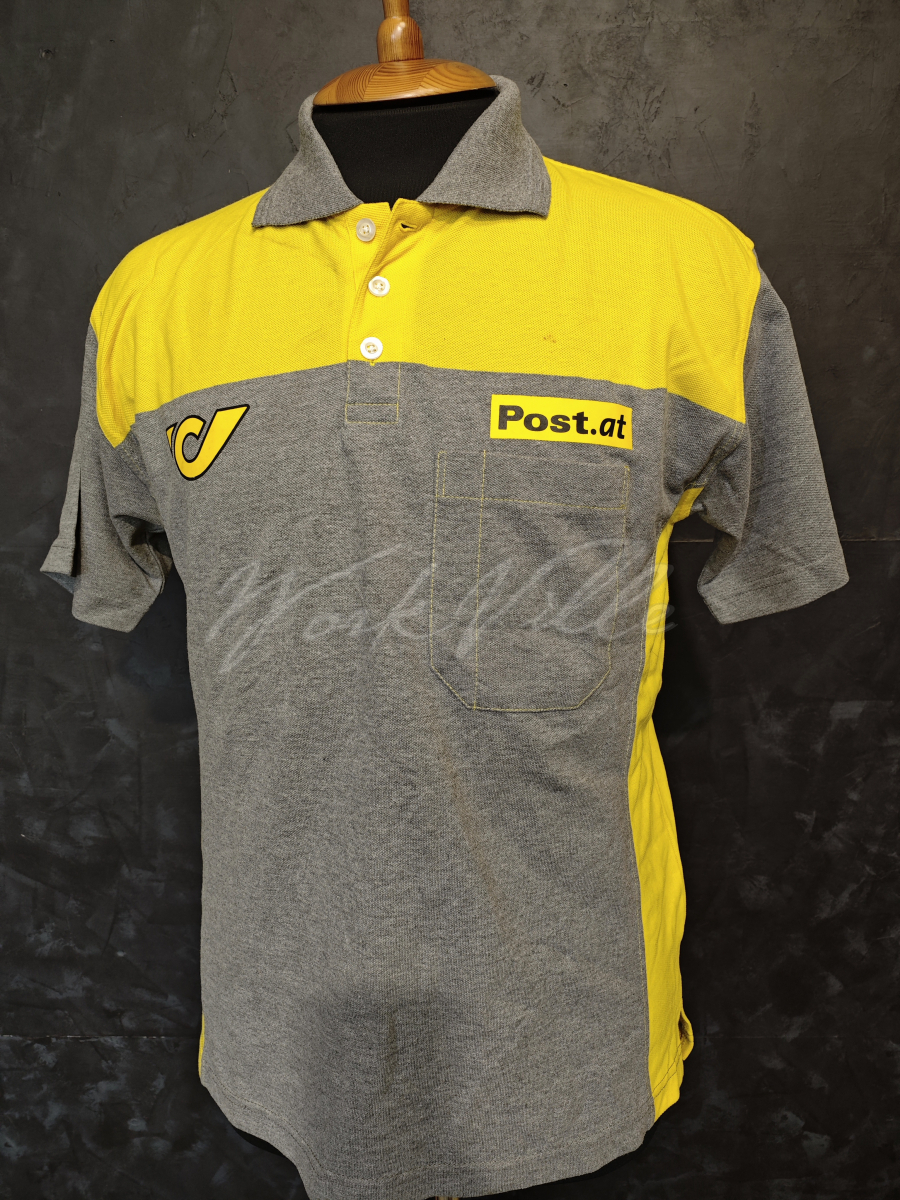 Футболка поло с коротким рукавом Австрийской почтовой компании, серо-желтого цвета.