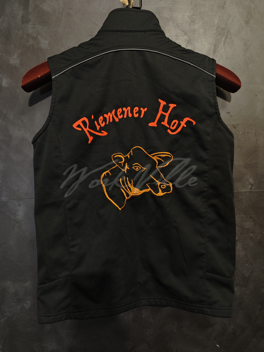 На спине имеется вышитый логотип Riemener Hof с головой коровы.