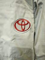 Рабочий светло-серый халат сотрудника концерна Toyota.