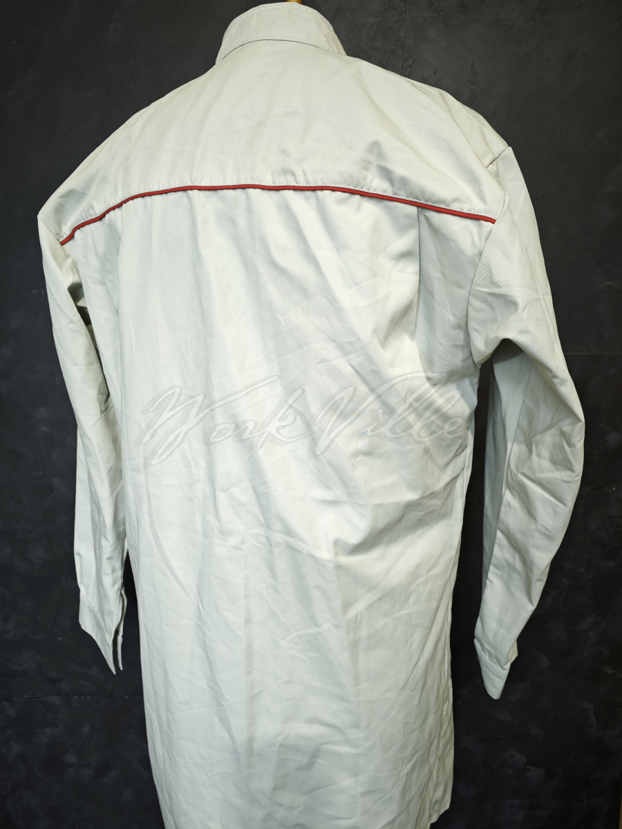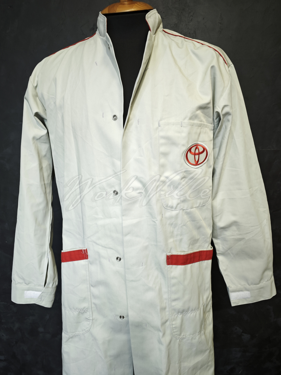 Рабочий светло-серый халат сотрудника концерна Toyota.