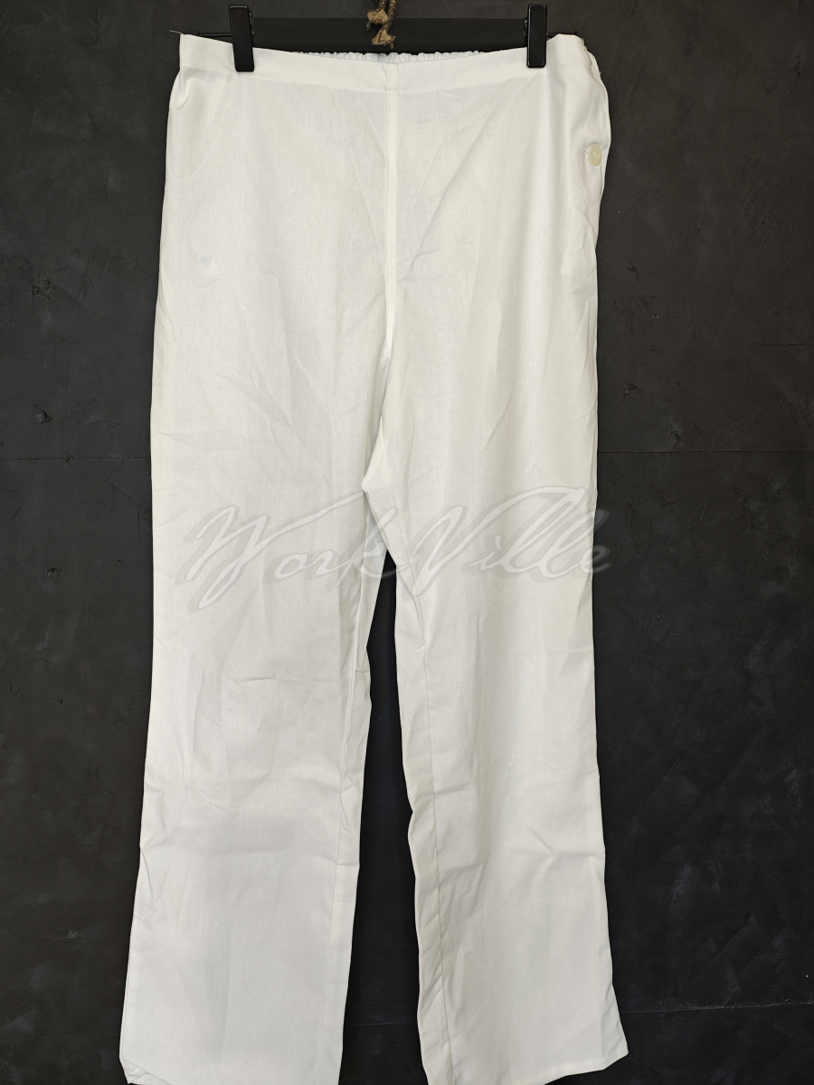 Брюки прямые винтажные без карманов белого цвета. Натуральный материал очень похож на поплин.
