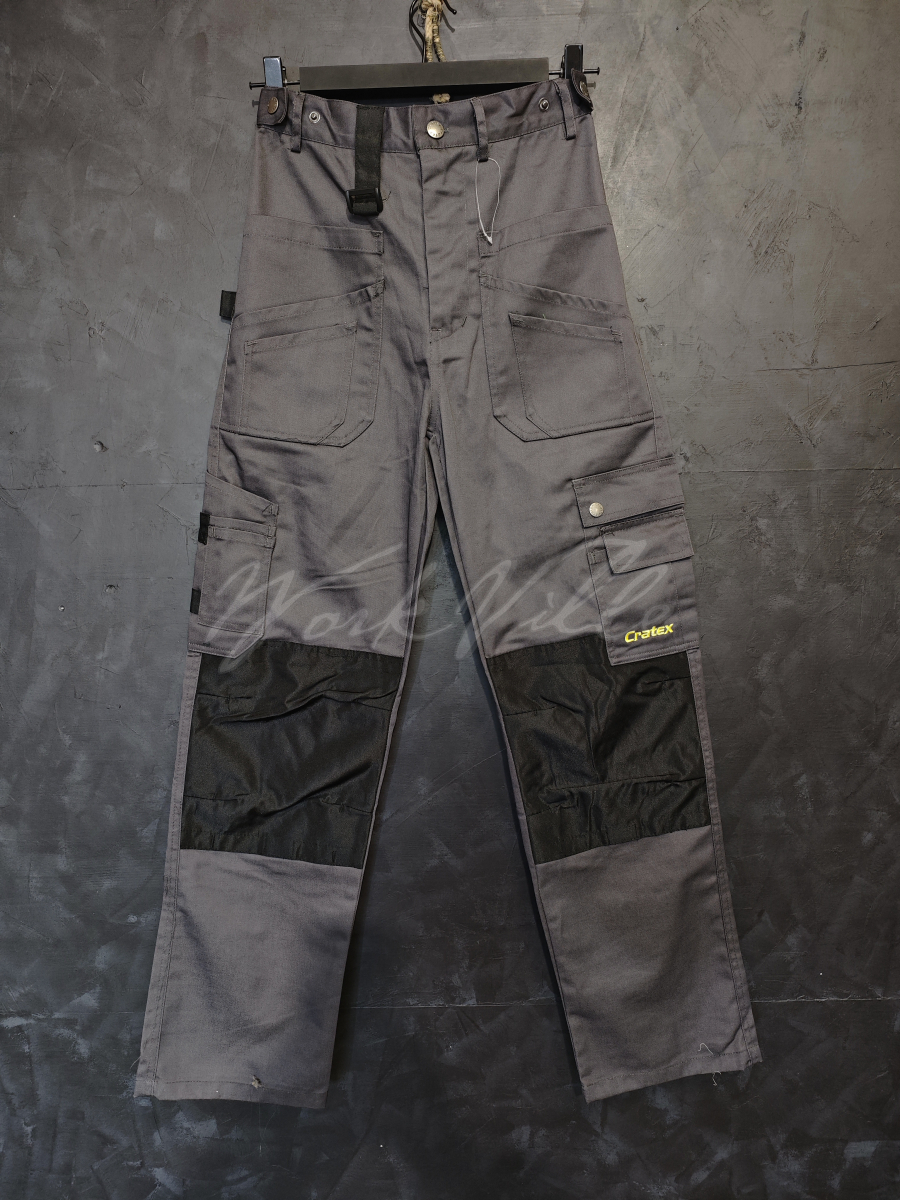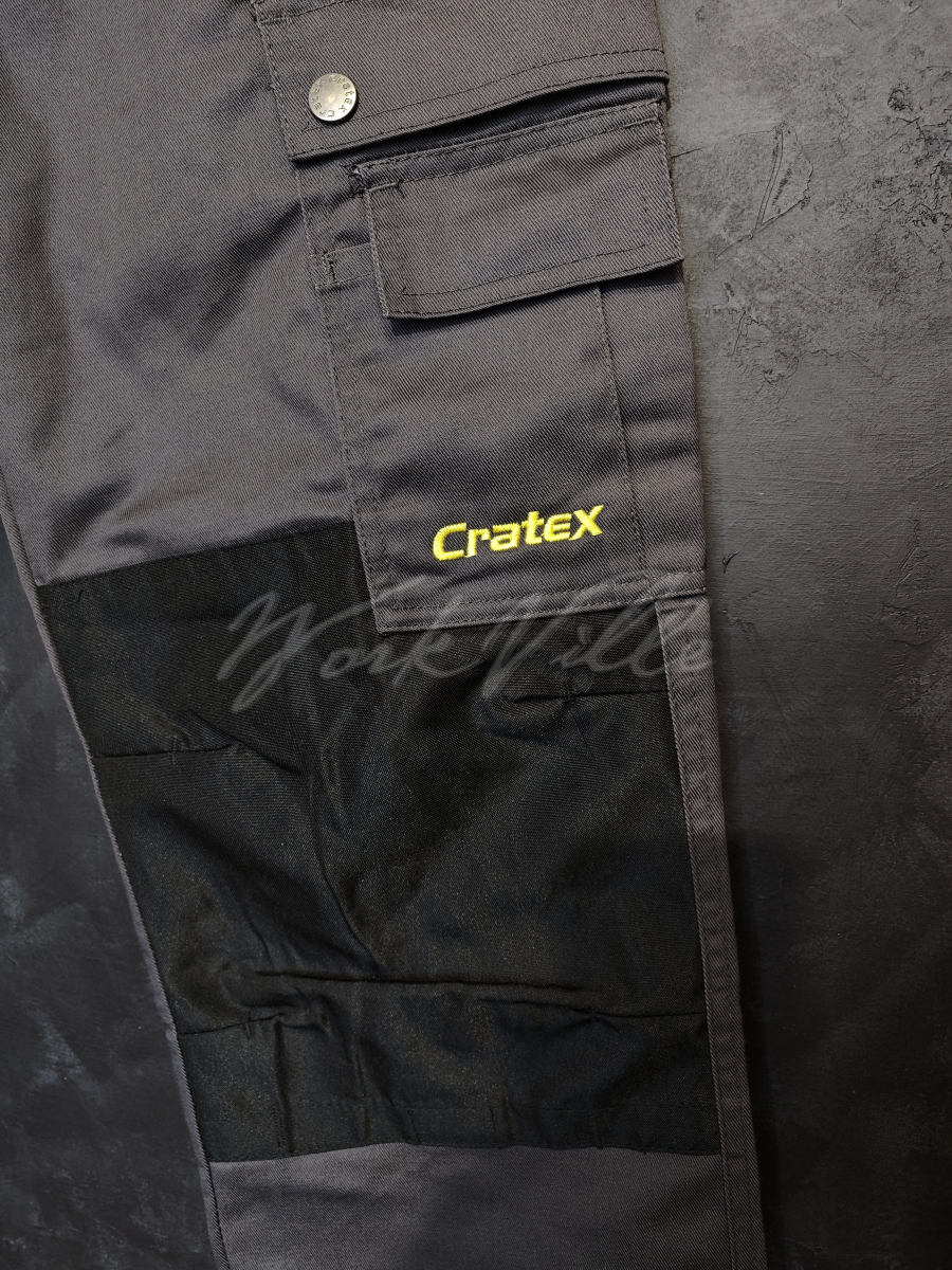 Рабочие брюки Cratex с усиленными коленями серо-черного цвета.
