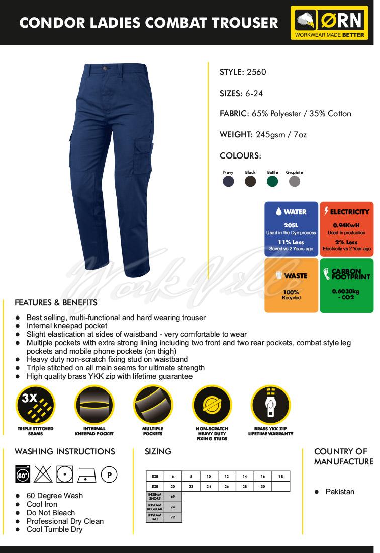 Женские легкие рабочие самые продаваемые, многофункциональные и износостойкие брюки ORN Condor 2560.