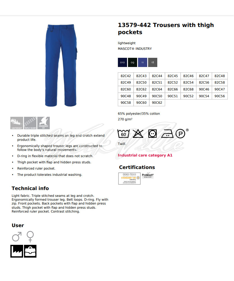 На продукт распространяются стандарты REACH и Oeko-Tex® Standard 100. Все ткани и все аксессуары MASCOT закупает напрямую у поставщиков. Ткань изделия окрашена поставщиком, имеющим сертификат Bluesign® и EN ISO 14001.