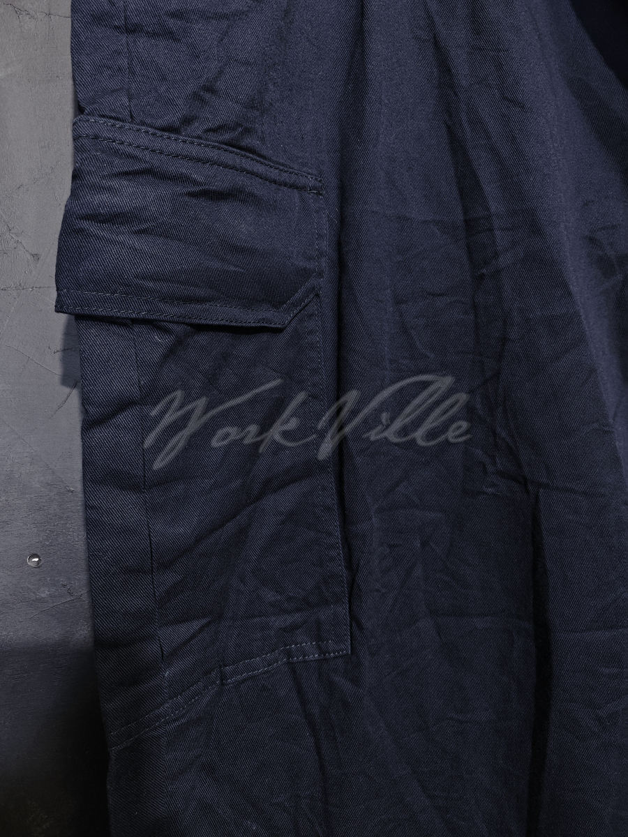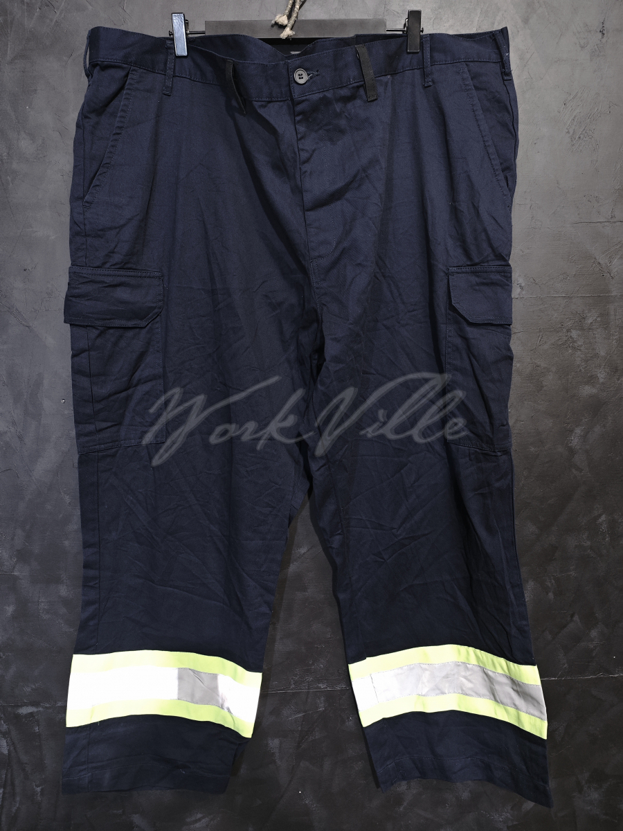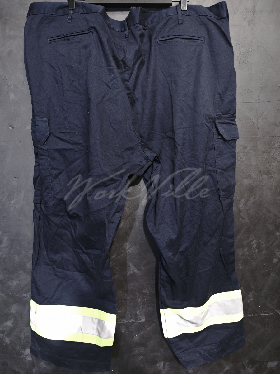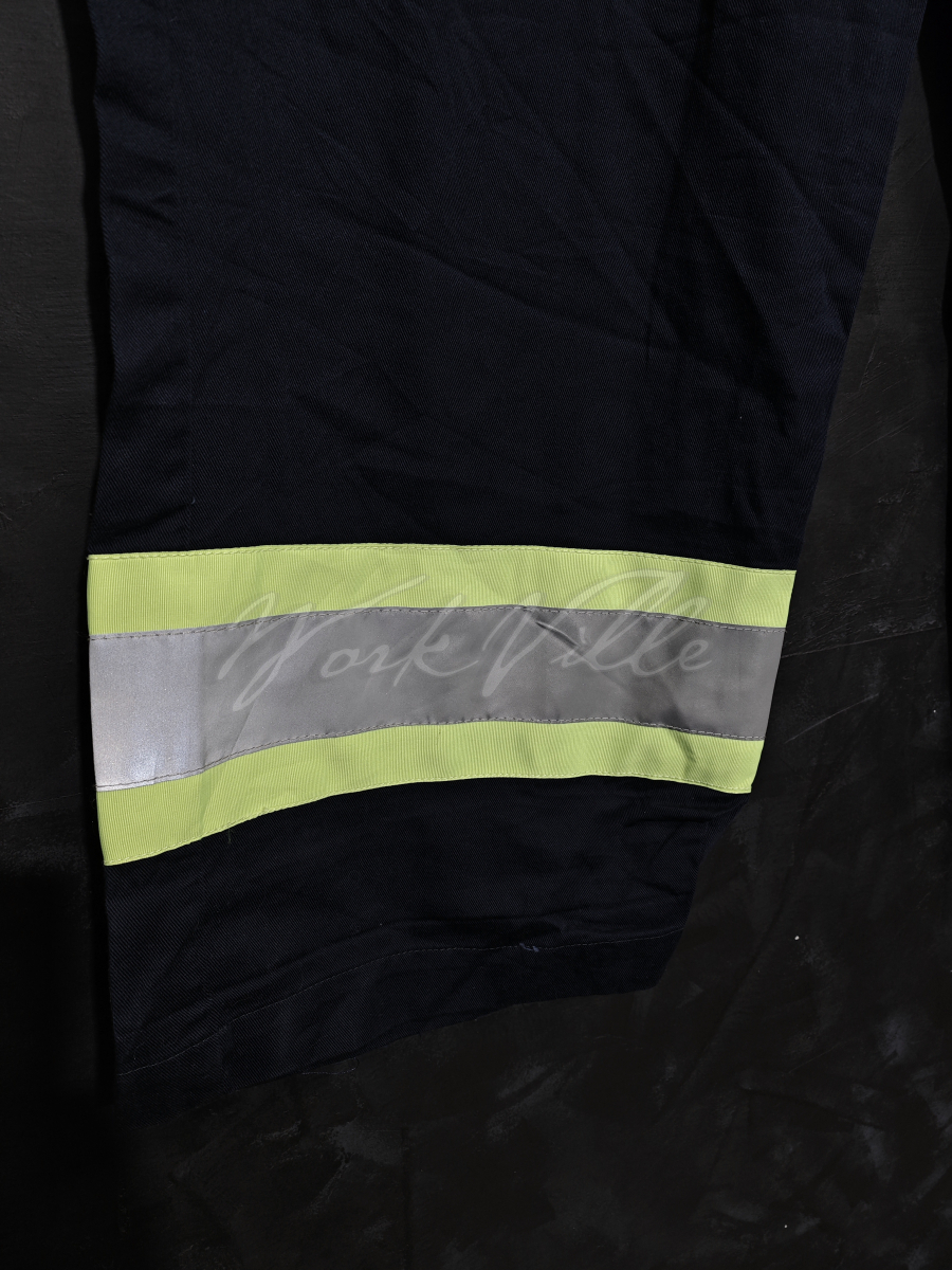 Брюки хлопковые темно -синего цвета с сигнальной полосой на штанинах.