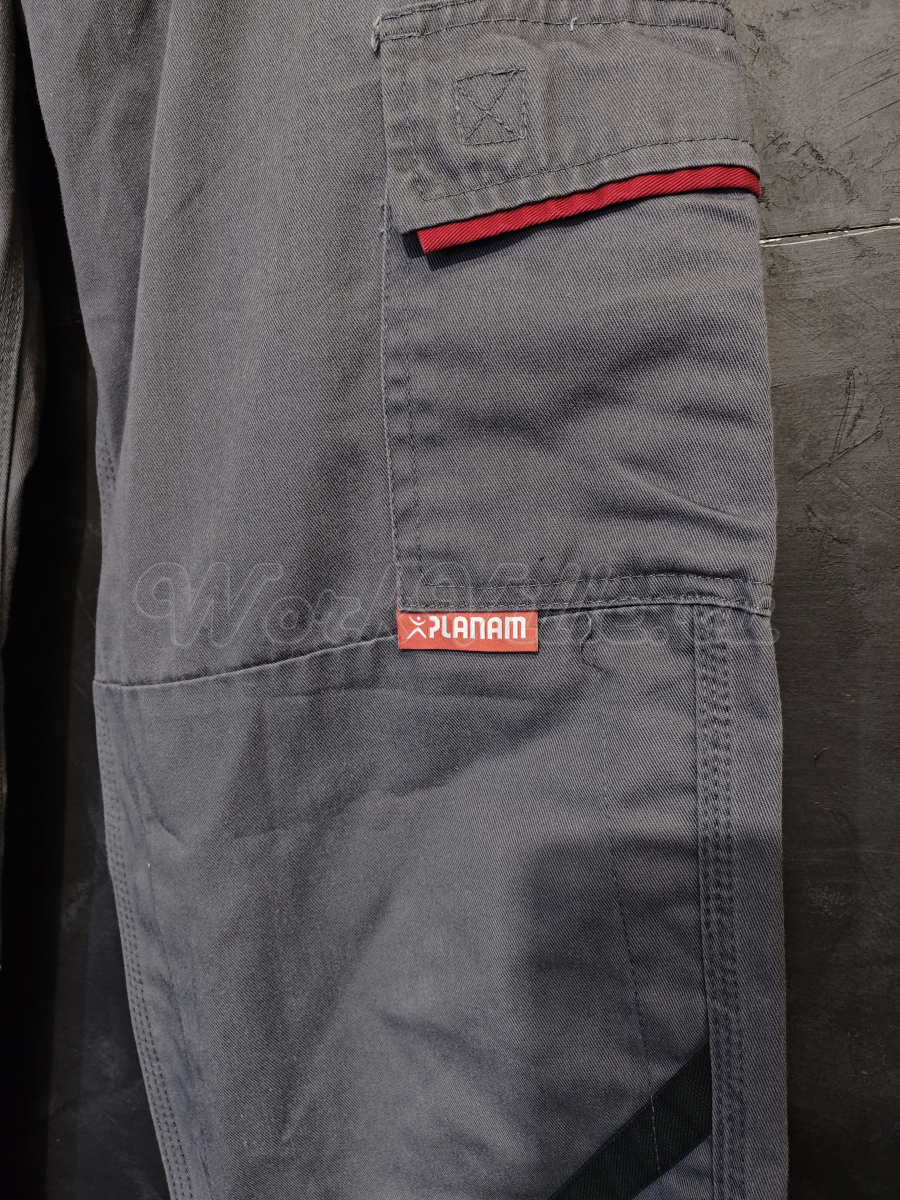 Рабочие брюки в сером цвете с контрастными вставками, немецкого бренда профессиональной рабочей одежды PLANAM.