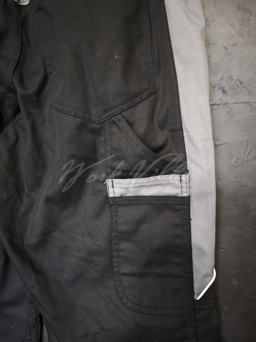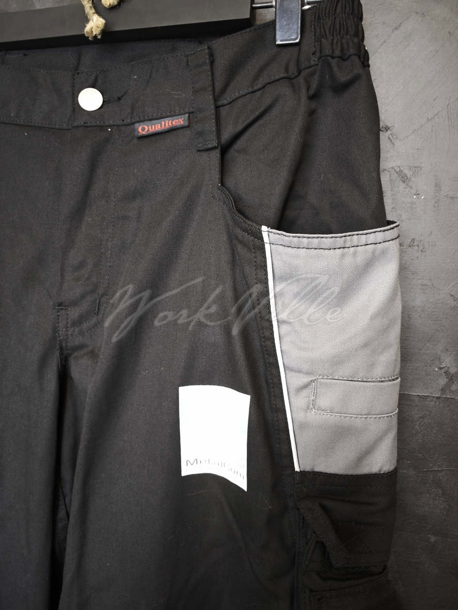 Рабочие брюки Qualitex черные с серыми вставками и карго карманами.