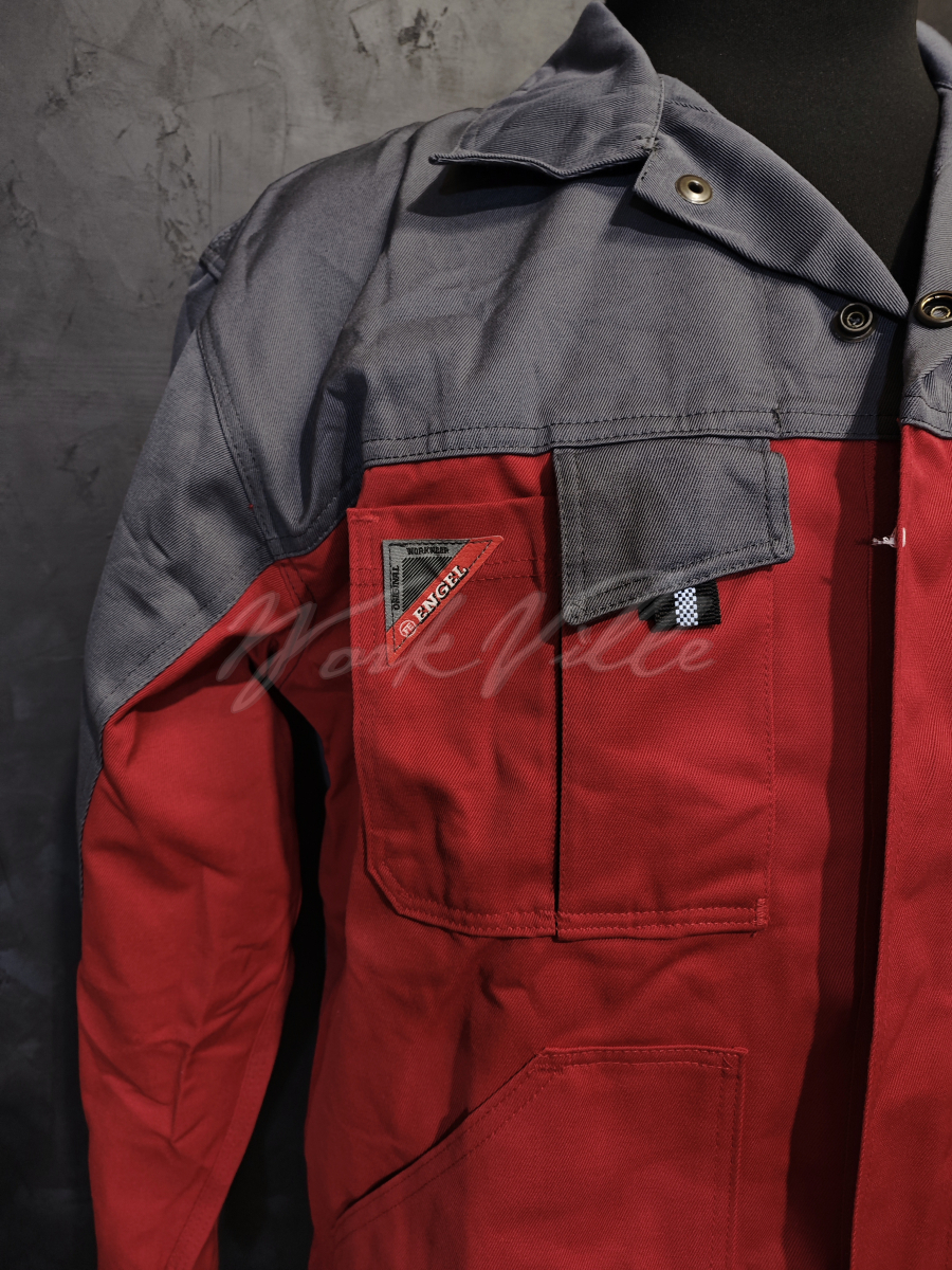 Рабочая куртка красно-серая Engel 1600-780 с брендингом Bitbau Dorr.