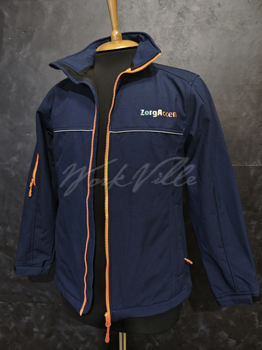 Темно-синяя куртка софтшелл на молнии с логотипом ZorgAccent.