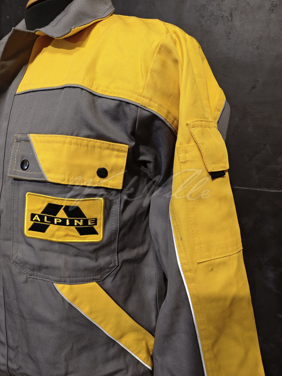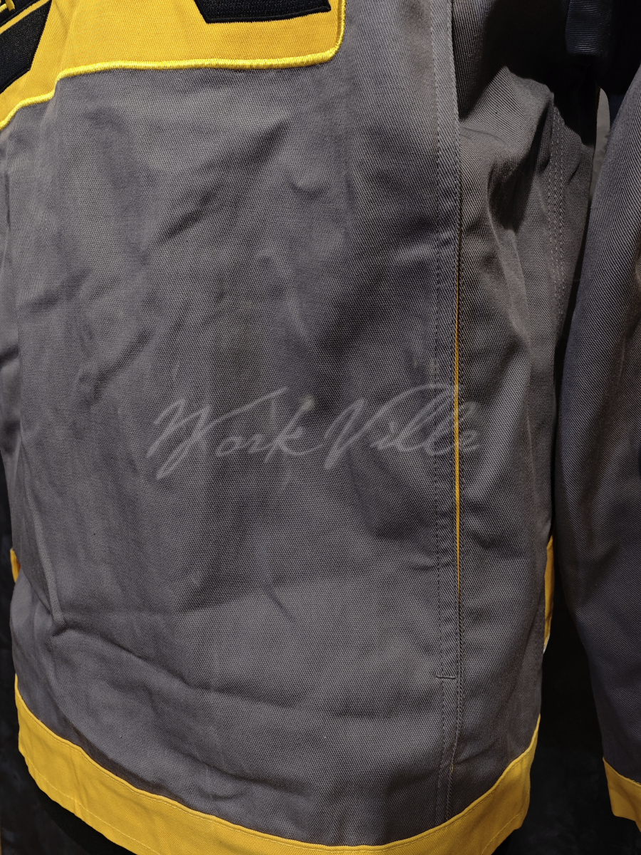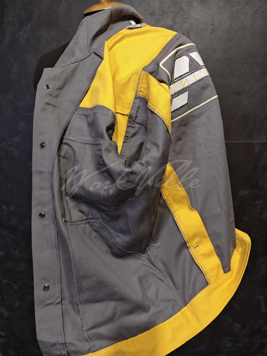 Рабочая куртка немецкого бренда специализированной одежды Khan серая с желтыми вставками.