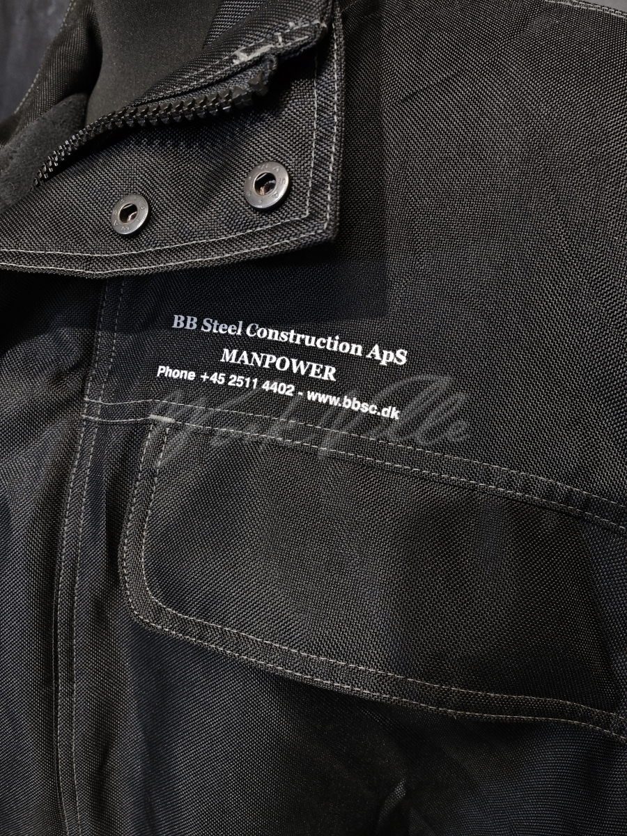 На спине и груди имеется надпись компании: BB Steel Constructions ApS